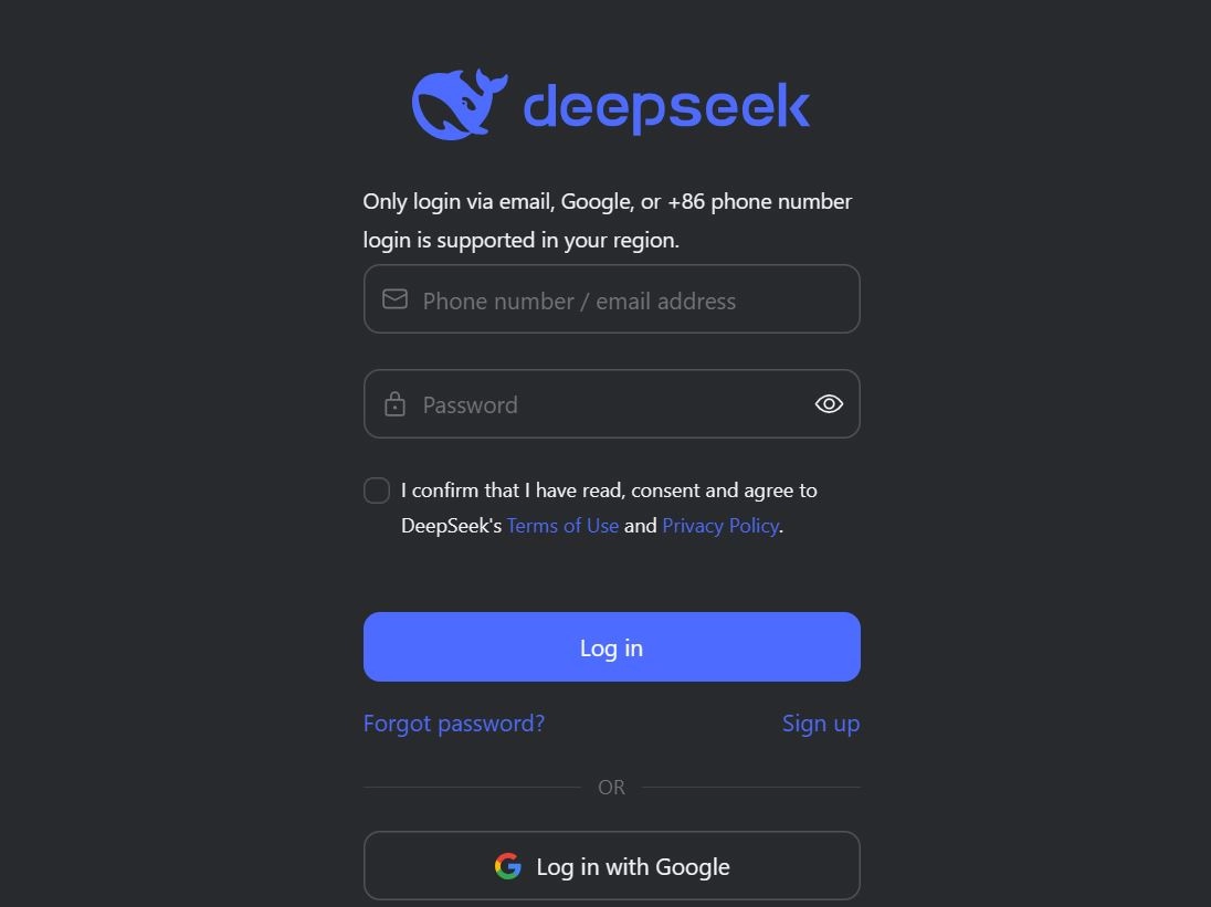 За да се възползваш от услугата, отиди на заглавната страница и кликни върху бутона Start Now. На страницата, която се отваря, трябва да се регистрираш: можеш да направиш това, като въведеш телефонен номер или имейл адрес и парола в съответните текстови полета; сложи отметка, че си съгласен с условията за ползване и политиката за поверителност, и след това натисни бутона Log in. Като алтернатива, можеш да щракнеш върху бутона Log in with Google и да влезеш чрез твоя Google акаунт. Както ти обясних по-рано, за да избегнеш потенциални проблеми с поверителността, регистрирайте се с вторичен имейл адрес или с нов профил в Google. Ще забележиш, че интерфейса на DeepSeek е подобен на този на конкурентните услуги, един от които е ChatGPT. Отляво можеш да видиш страничната лента, в която са събрани разговорите, които си имал с чатбота. За да започнеш нов чат, можеш да щракнеш върху бутона New chat. Като кликнеш върху бутона MyProfile (отляво, в края на страничната лента), можеш да отвориш менюто, което ти позволява да промениш настройките на услугата Settings, като например език и тема, изтриване на всички разговори Delete all chats, излизане от акаунта Log out, и т.н.